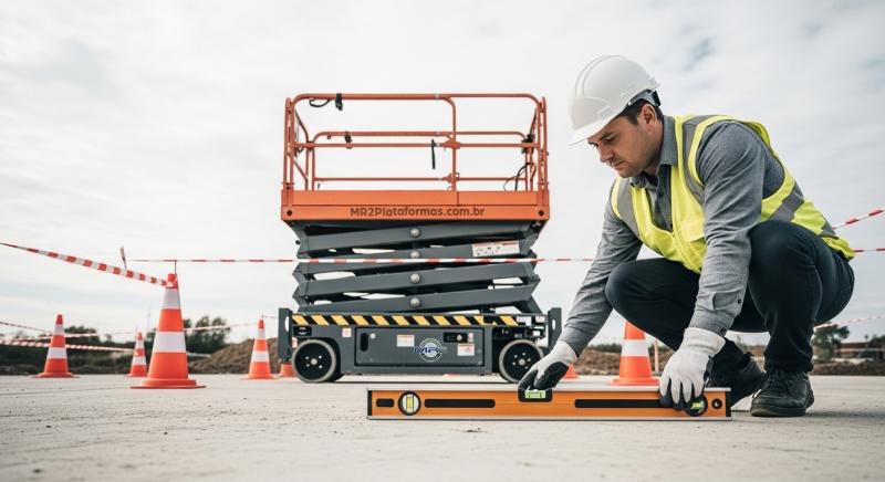 Ao alugar com a MR2 Plataformas, o cliente recebe equipamentos revisados e prontos para operação. Ainda assim, a conferência antes do uso é uma etapa indispensável para manter o padrão máximo de segurança.